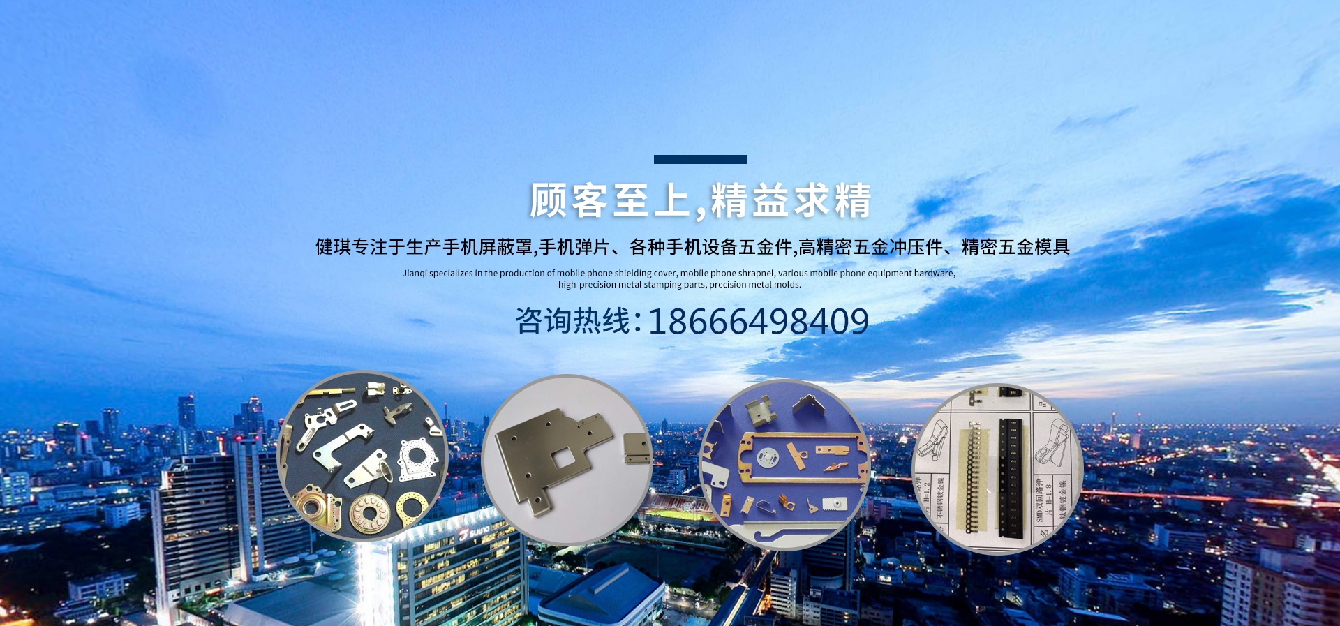 健琪專注于生產(chǎn)手機(jī)屏蔽罩,手機(jī)彈片、各種手機(jī)設(shè)備五金件,以及高精密五金沖壓件、精密五金模具。宜賓市健琪精密五金制品有限公司一直以“顧客至上,精益求精”為指導(dǎo)思想;以“質(zhì)量第一,持續(xù)改進(jìn)”為公司的最宗旨;以“以客為尊,以人為本,共同發(fā)展的管理理念;以“高效,創(chuàng)新,團(tuán)結(jié),感恩”為企業(yè)精神。與客戶、全體員工一起成長!歡迎各界朋友蒞臨參觀、指導(dǎo)和業(yè)務(wù)洽談。
